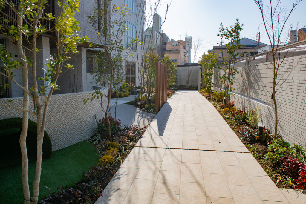 フレシア天王寺の駐車場は、電動チェーンゲート付き。住まう方の安心とプライバシーにも配慮しています。